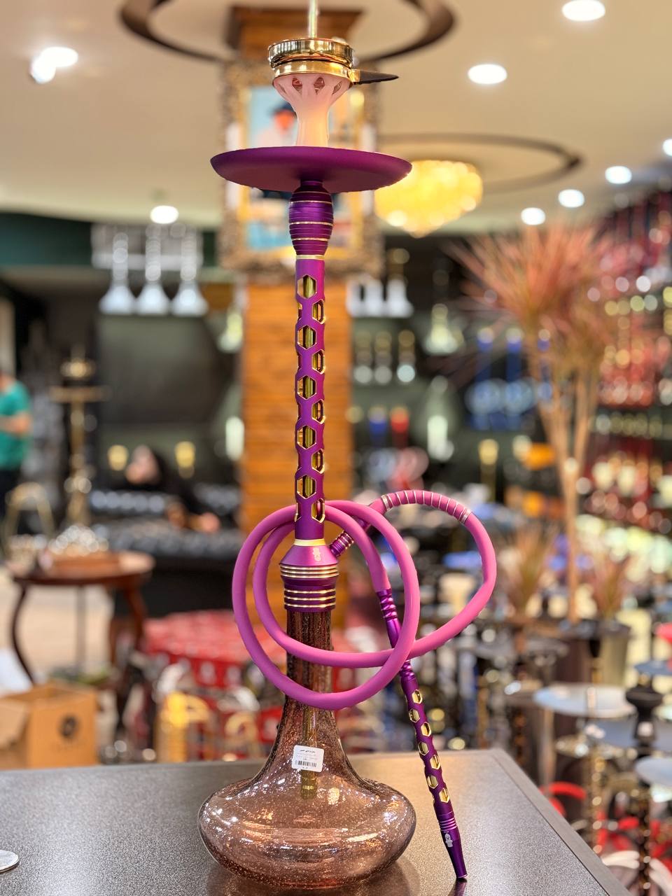 ست قلیان مسترلوکس بزرگ بدنه بنفش طرح زنبوری شیشه بنفش شب تاب کد MR114