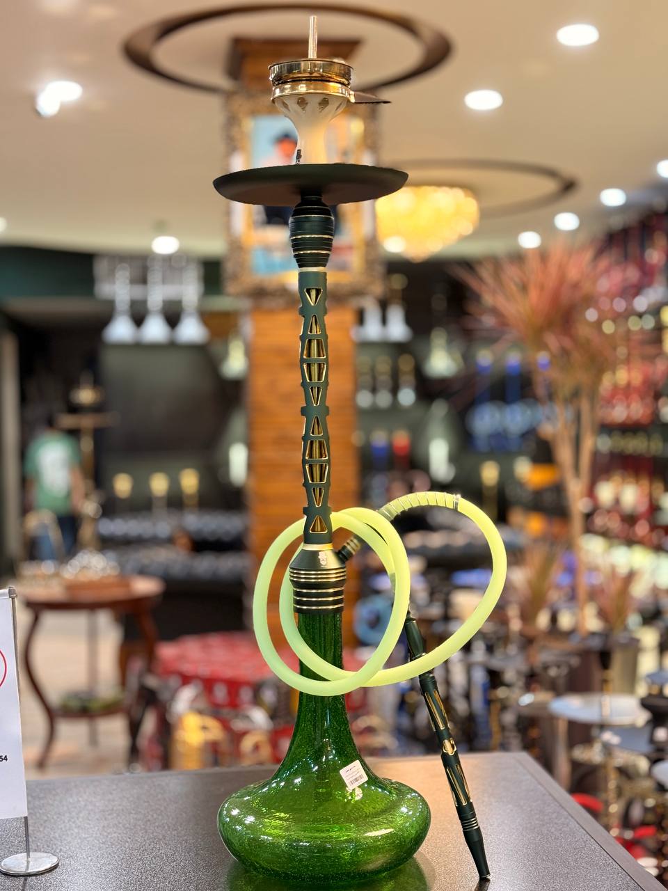 ست قلیان مسترلوکس بزرگ بدنه سبز طرح لوزی شیشه سبز کد MR116